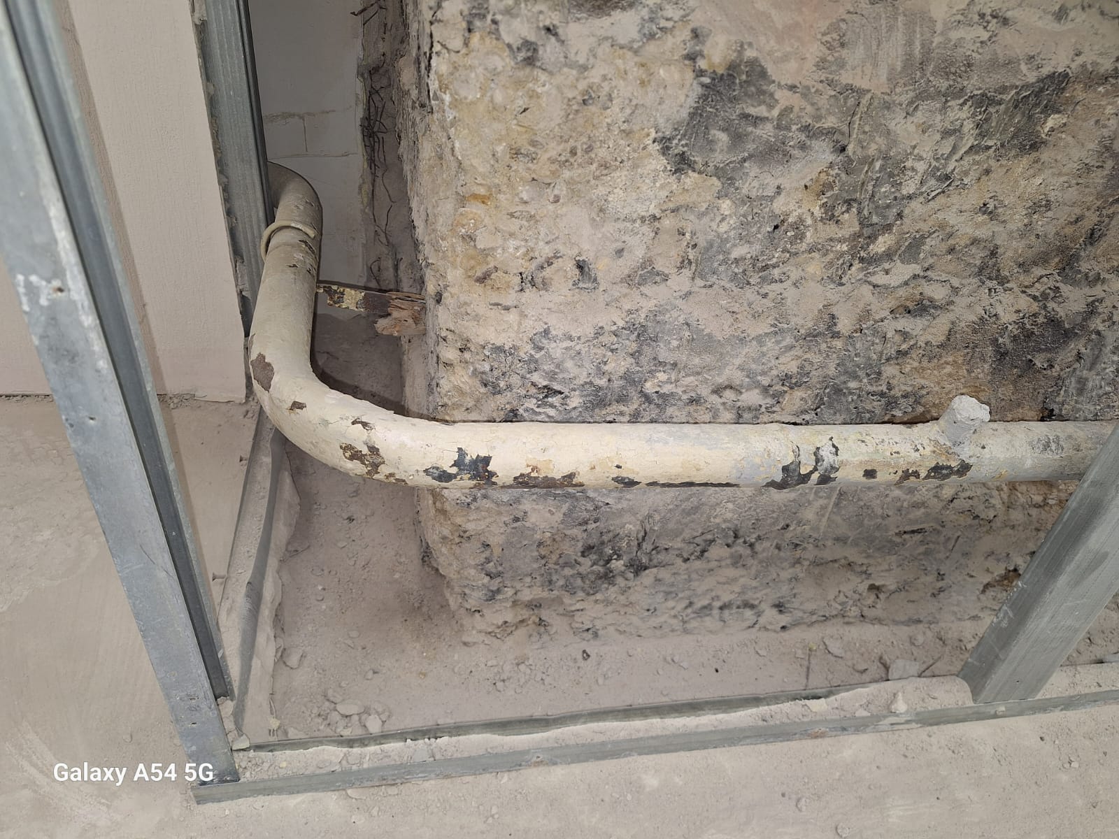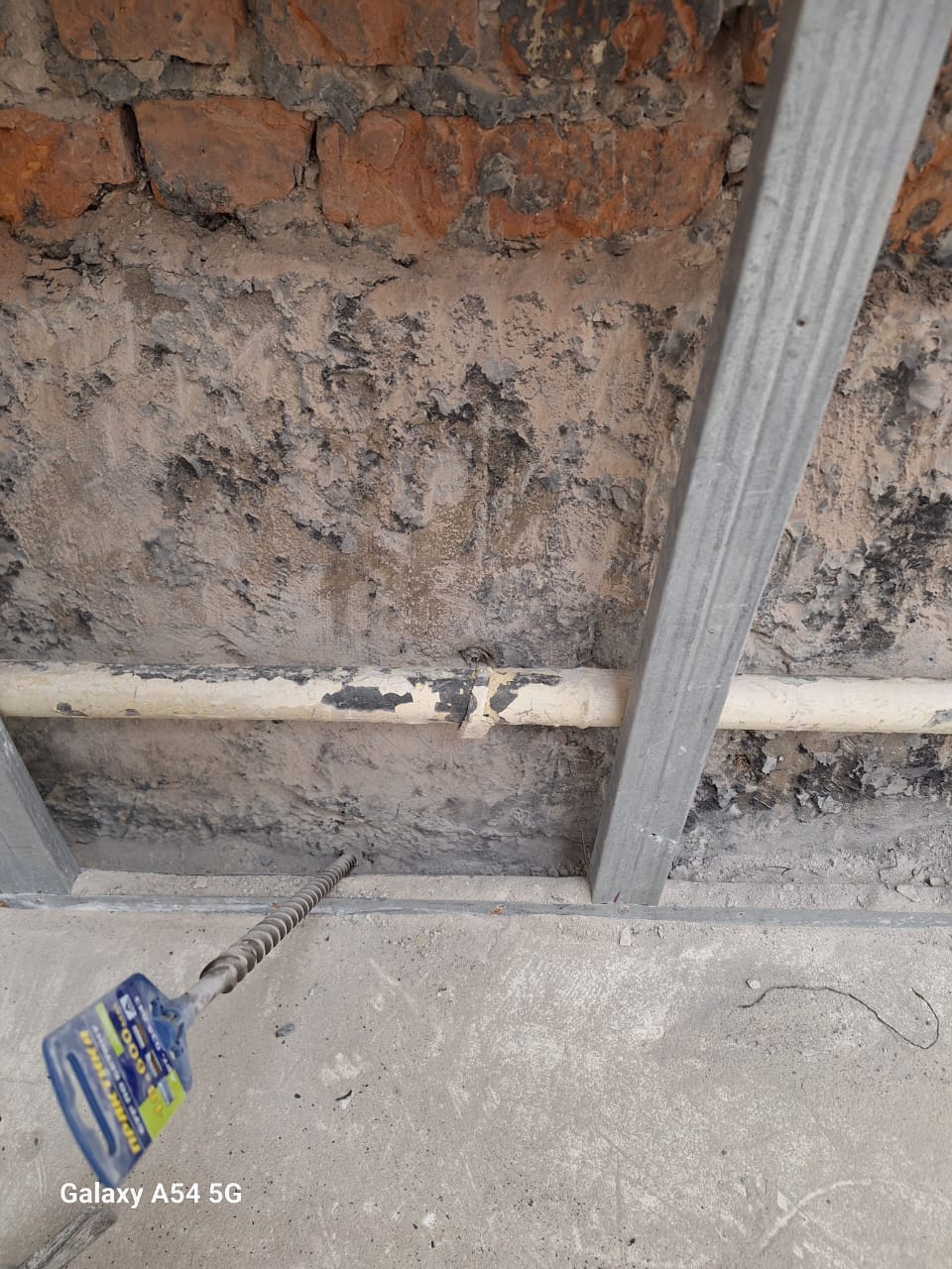 Выполненная работа: Демонтаж штукатурки, Зачистка и обеспылевание, Иньектирование стен микроцементом, Иньектирование стен и примыкания полиуретановыми смолами и акрылатным гелем, Нанесение материала проникающего и бронирующего действий, Восстановление штукатурного слоя