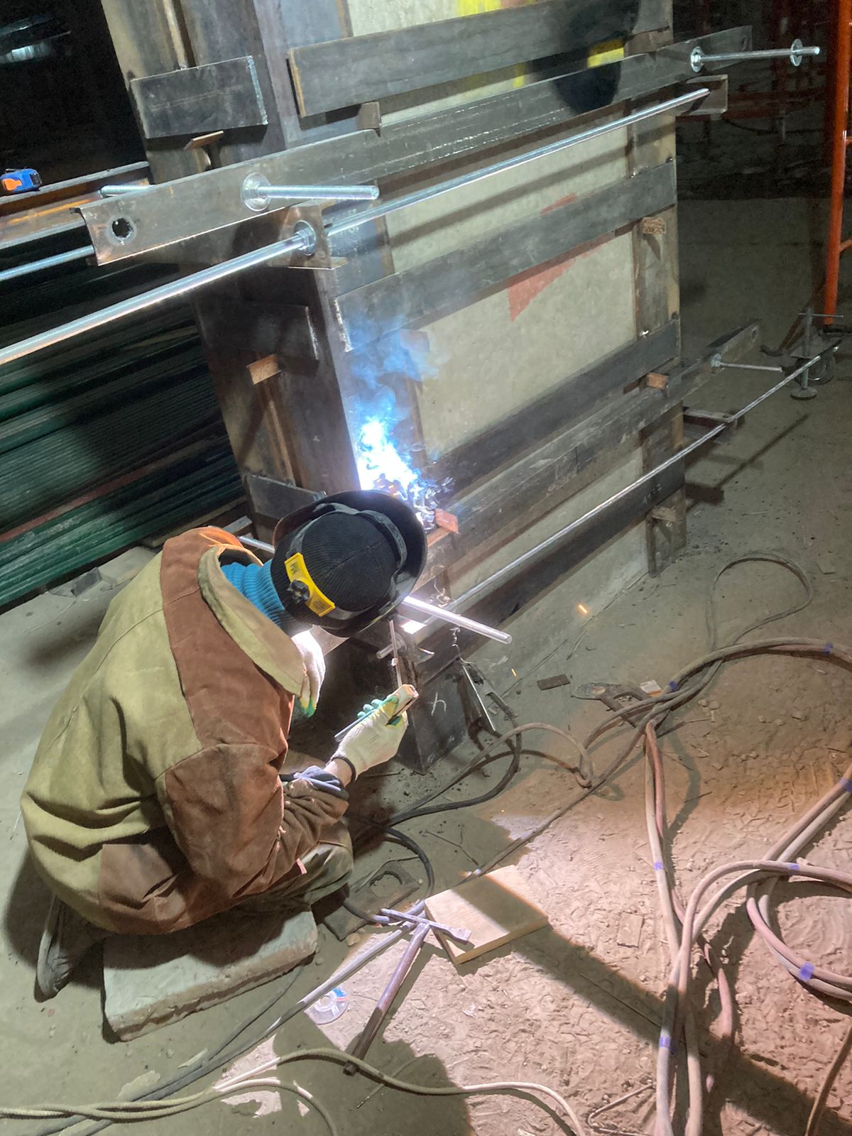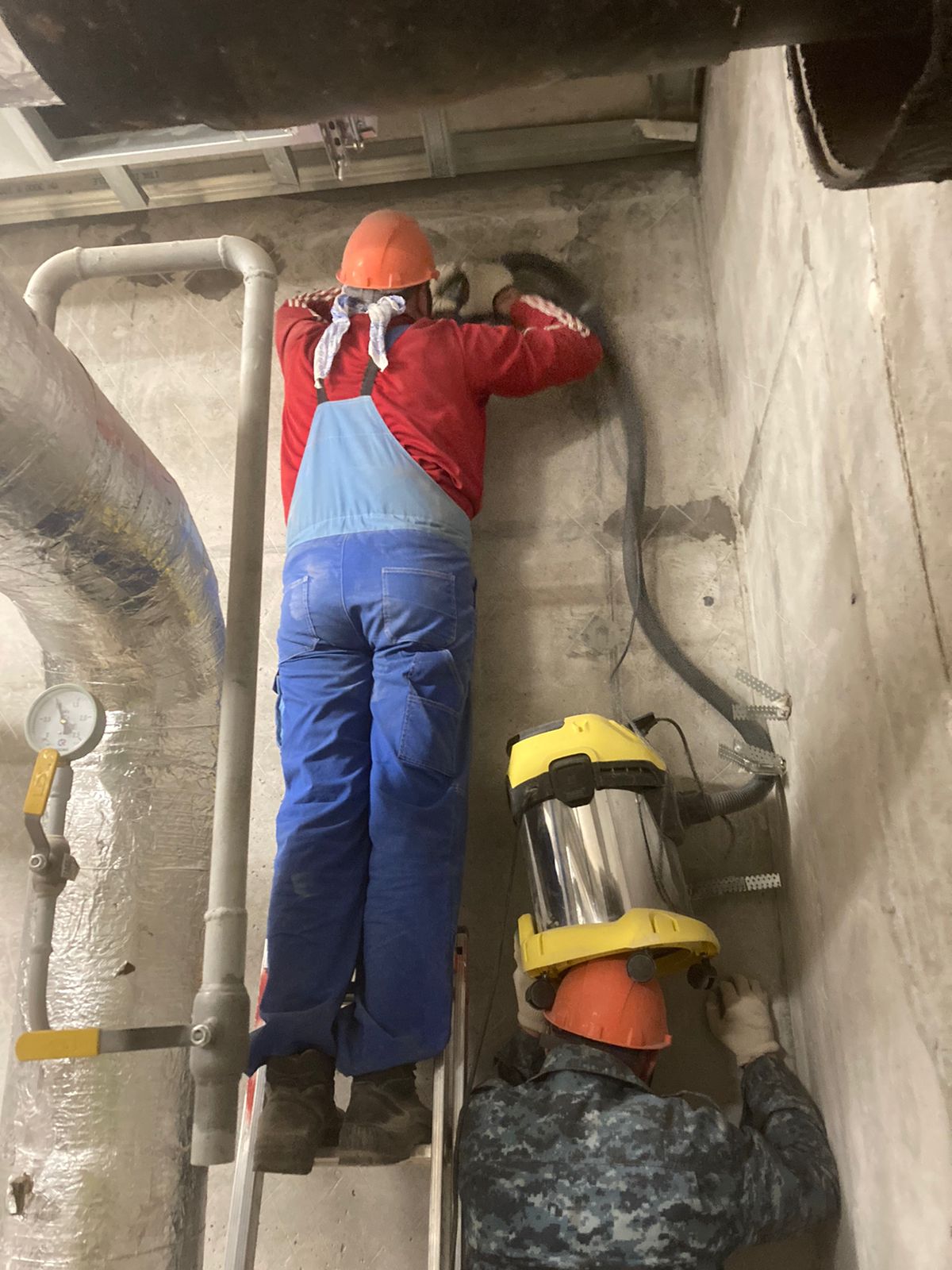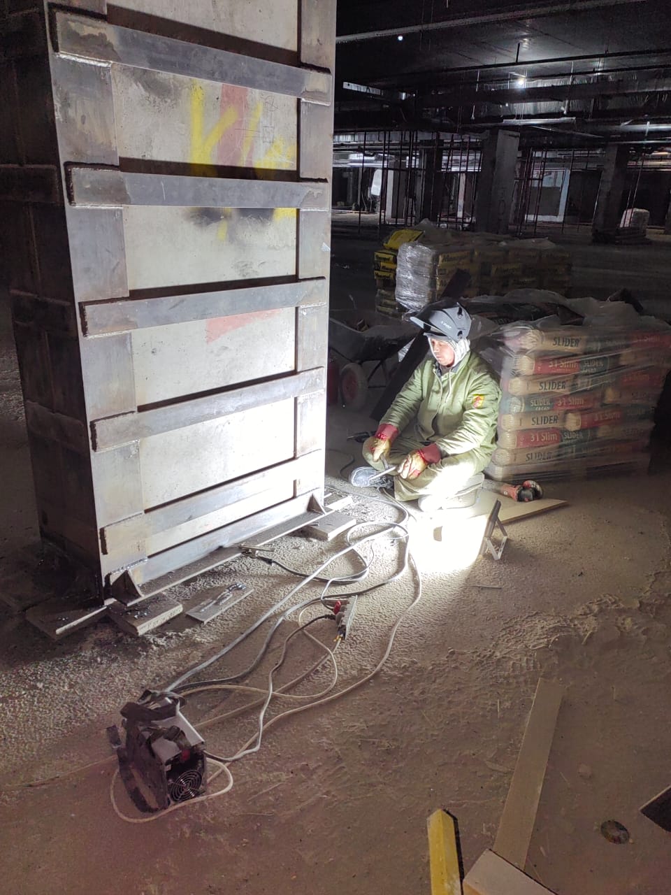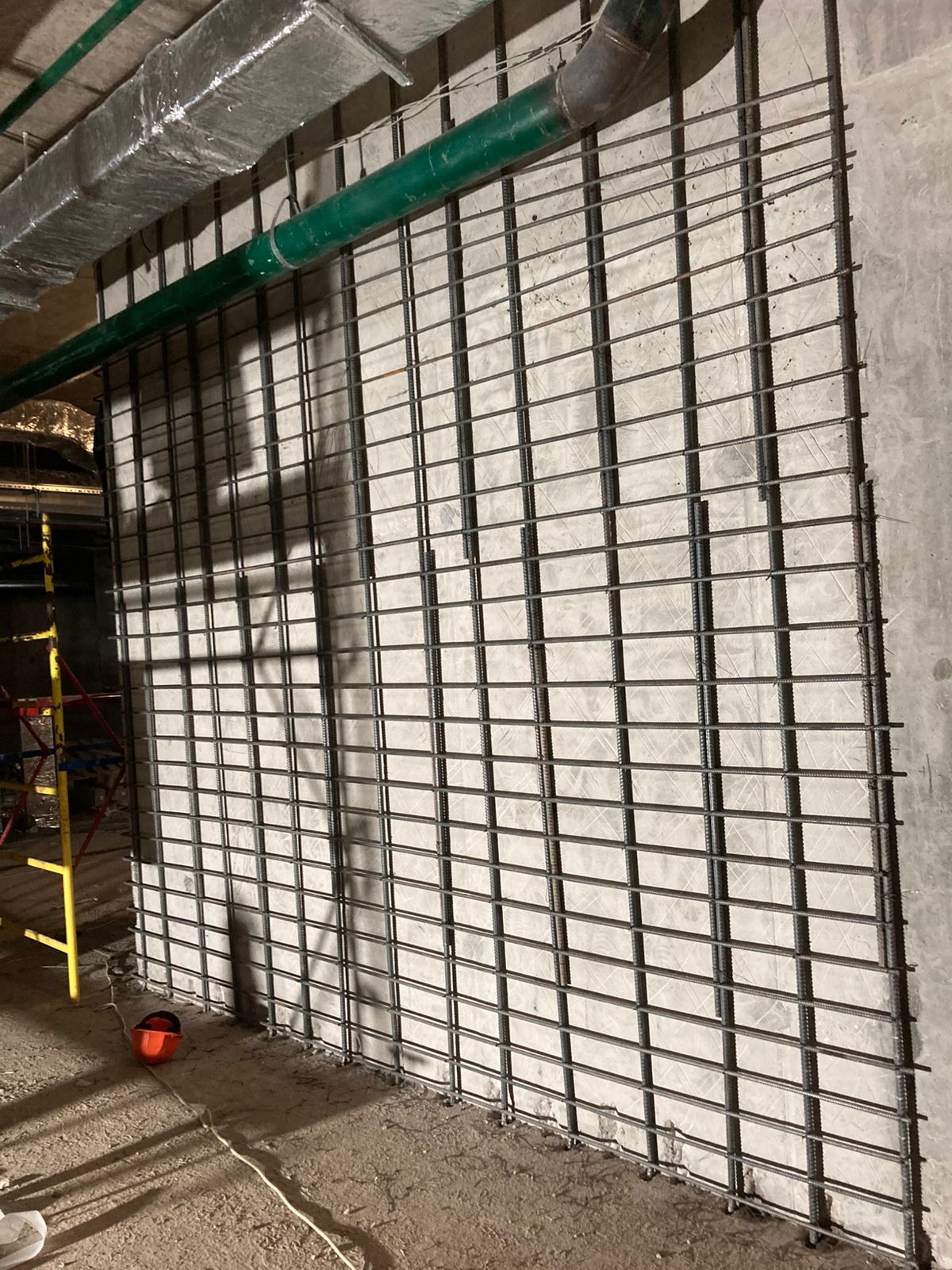 Выполненная работа: Монтаж железных обойм пилонов, установка вертикальных уголков, раскройка металла. Усиление плиты перекрытия углеволокном с последующем нанесение огнезащитного покрытия. ⁠Усиление пилонов металлическими обоймами. ⁠Усиление стен при помощи увеличения торкретирования.